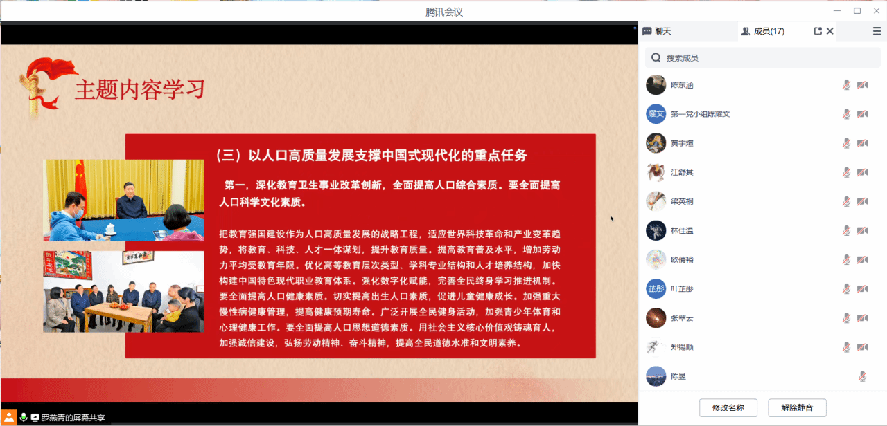 为了加深同志们对“走人口高质量之路,助力中国式现代化”这一主题的理解,感受在新时代背景下,高质量充分就业所带来的具大意义,罗燕青同志组织党内组员观看了中央电视台新闻联播的相关专题报道。