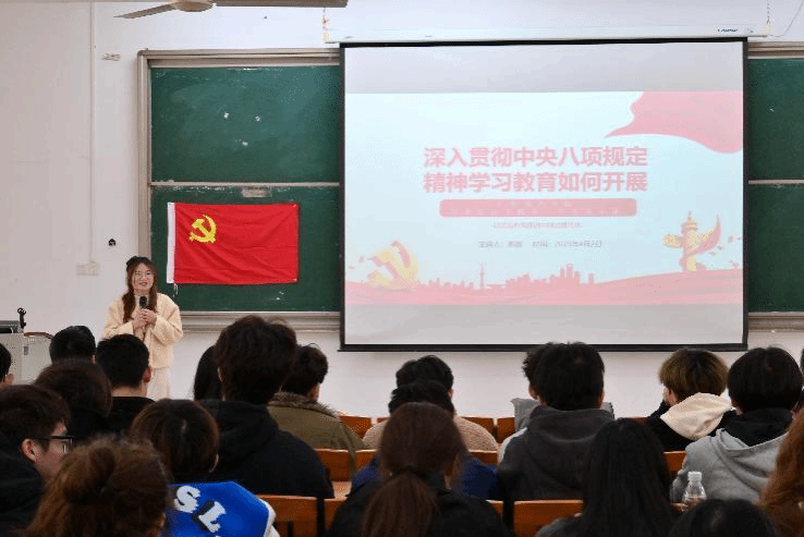 课上,陈娜书记带领支部全体积极分子认真学习领会习近平总书记关于加强党作风建设的重要论述,系统总结党的十八大以来深入贯彻中央八项规定精神取得的显著成效。同时,她指出,接过历史接力棒的新一代共产党人,从立规矩开始,从作风建设切入,从每一位共产党员做起,开启了再塑自身形象的“第一行动”。她通过“由风及腐”的典型案例,加强警示教育,引导学生党员和入党积极分子锤炼党性、提高思想觉悟,密切党群干群关系,以良好的作风推动党的先进性和纯洁性建设。
