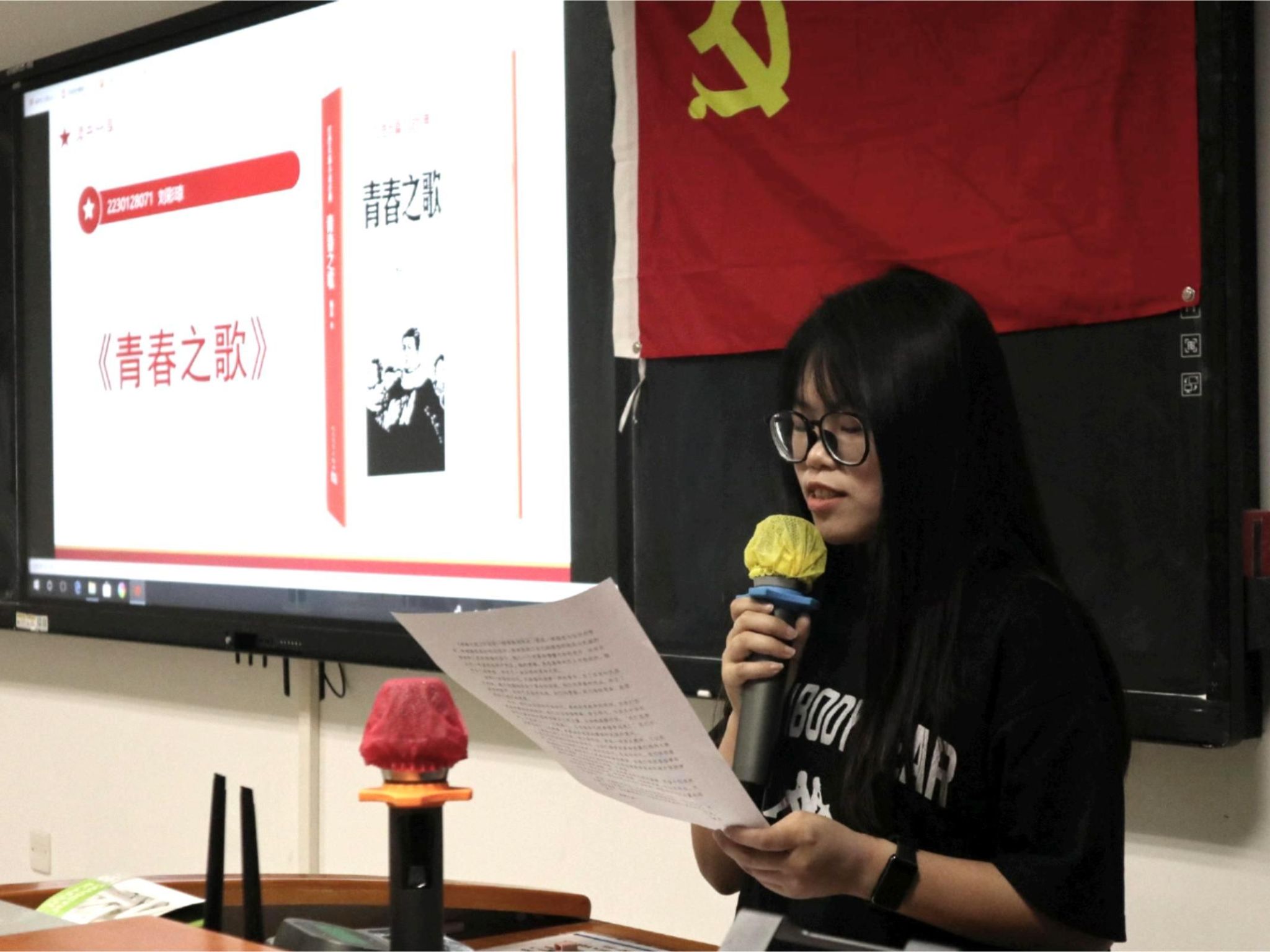 在读书分享环节,同学们热情高涨、踊跃参与,带来多部经典著作的深刻感悟。阮华颖与张文涛力荐革命小说《红岩》,引领众人回溯那段风云激荡的斗争岁月,深切体悟革命先烈坚如磐石的信仰和百折不挠的意志。刘彩琼分享的《青春之歌》,生动展现青年群体于革命浪潮中破茧成长、勇挑重担的热血历程 。丁婉茹带来的《闪闪的红星》,以儿童视角切入,呈现出革命年代满溢的热血与希望 。马泳善分享的《习近平的七年知青岁月》,则让同学们得以深入了解领袖青年时期历经的艰苦磨砺,以及那份深厚真挚的为民情怀。