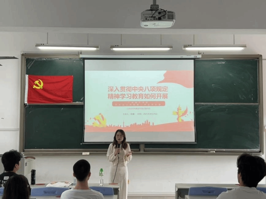 为深入贯彻中央八项规定精神,筑牢党员廉洁自律思想防线,4月29日中午,威廉希尔学生第一党支部在四教202室开展“严守八项规定,弘扬清风正气”主题党日活动。本次党日活动由威廉希尔学生第一党支部书记陈娜老师主持,学生第一党支部党员及积极分子参加。
