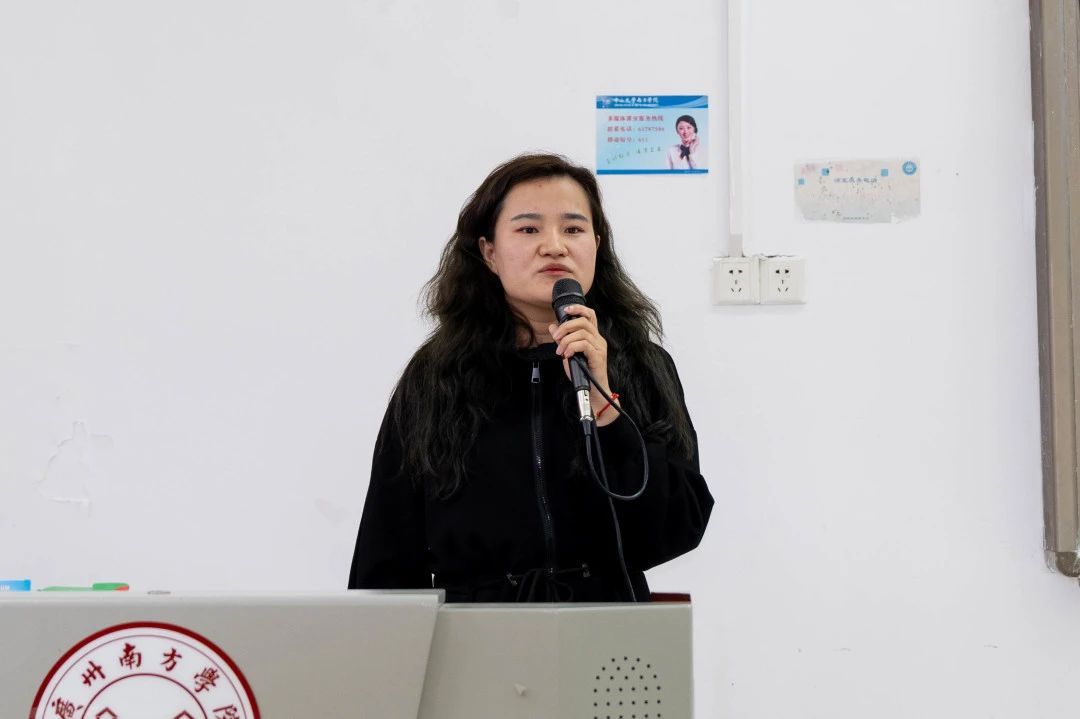 会议伊始,陈婷老师以"成长共同体"理念为主线,系统阐述了未来团学工作方向。她强调构建高质量学生干部队伍是学院发展的核心引擎,指出"优秀学生干部的成长轨迹就是育人成效的生动注脚",要求骨干成员厚植服务意识,将"为师生办实事"融入日常,通过系统参与团组织活动提升综合素养,主动对标党员标准;同时提出建立"院-班"两级联动机制,学工办将通过专项指导强化班级团支部建设,在评优推优、跨班级协作中搭建多元化实践平台,充分激发学生潜能。最后,陈老师寄语全体骨干既要锤炼工作能力,更要在团队协作中培育深厚情谊,实现个人成长与集体发展的同频共振。