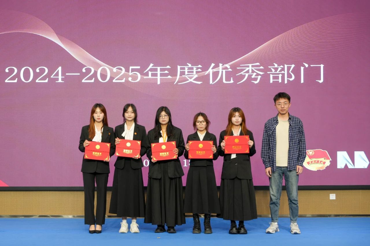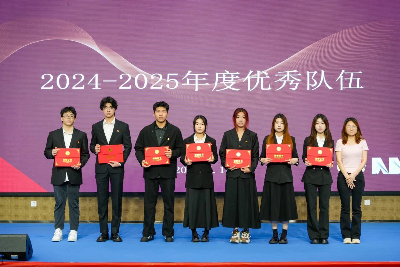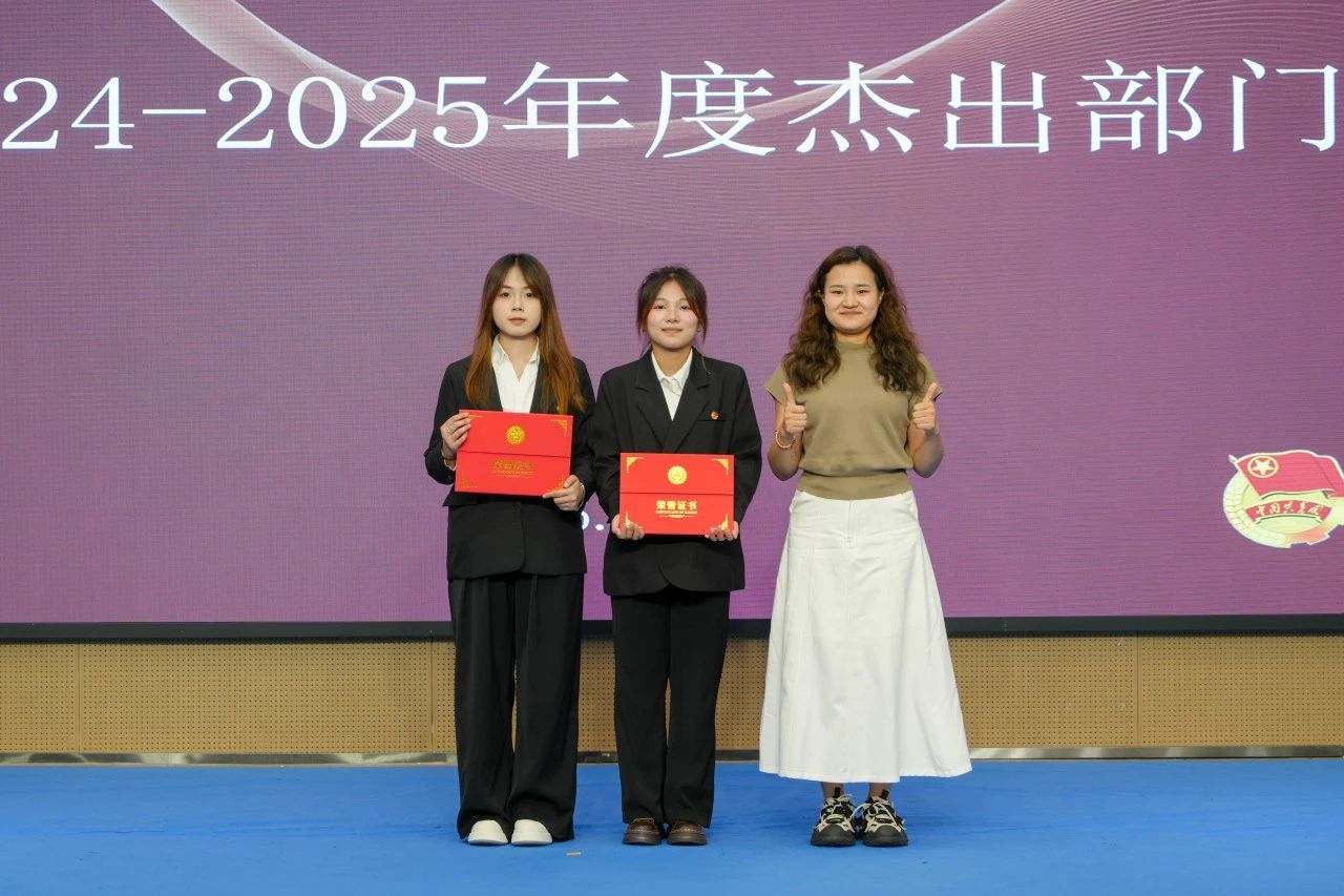 表彰环节中,陈婷老师、李淑娜老师、邹清朗老师和陈娜老师为本年度表现突出的优秀部门与队伍颁发荣誉。这一表彰不仅是对他们勤勉付出的充分肯定,更是对他们卓越成绩的真诚礼赞,彰显了学院对团学工作的高度重视与高度认可。