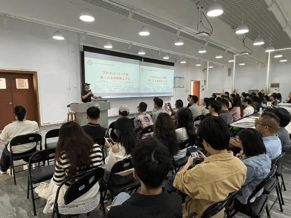 为认真做好艺创系2025届毕业生就业工作,10月30日中午,艺创系召开2025届毕业生就业工作全体教师动员会。艺创系主任冯原,系党总支书记、副主任朱文山以及学系全体教师出席本次会议。会上,冯原主任结合2025届学系专业发展趋势、学校就业工作推进会议分析了当前艺创系学生的就业形势,表示当前学生就业形势严峻,希望艺创系全体教师肩负历史使命,积极投身于2025届毕业生就业工作中。