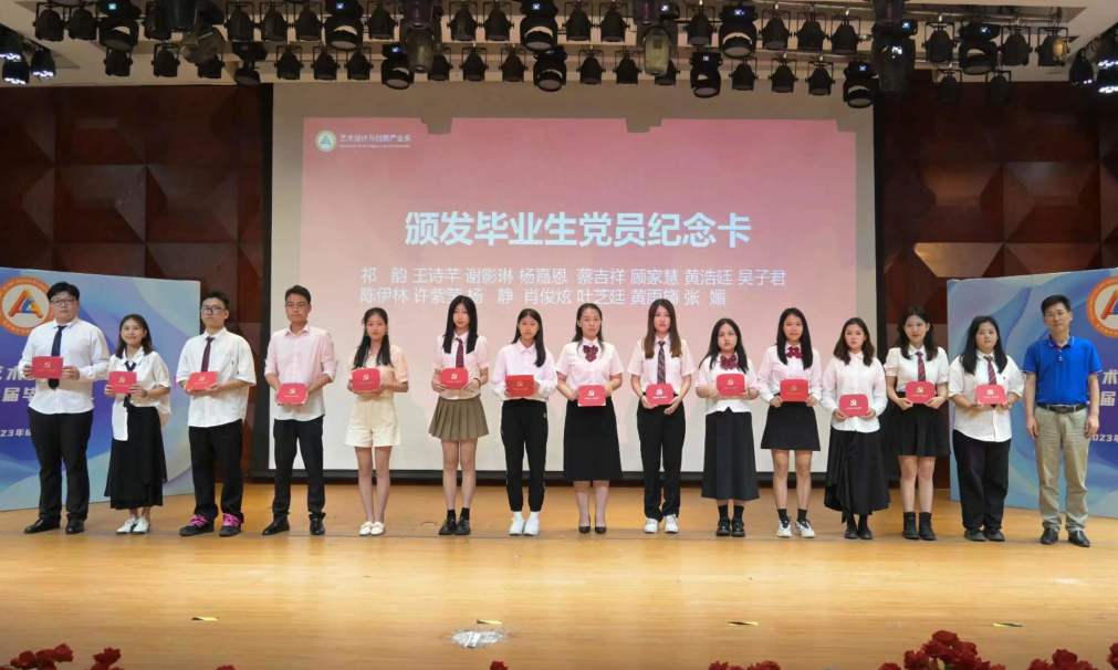 在这段悦人的旋律后,是毕业生党员纪念卡的颁发仪式,毕业生党员们纷纷上台,他们是党员先锋模范,是艺创系骄傲,他们胸怀理想信念,不畏困难挑战。