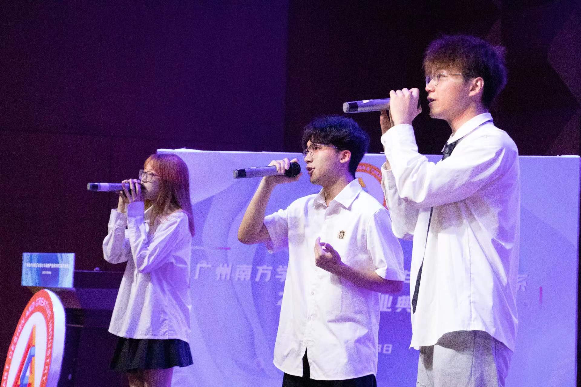 伴随着熟悉的前奏,所有的师生起立,合唱广州南方学院校歌。青春年华,流动在旋律里;理想抱负,凝集在咏唱间。
