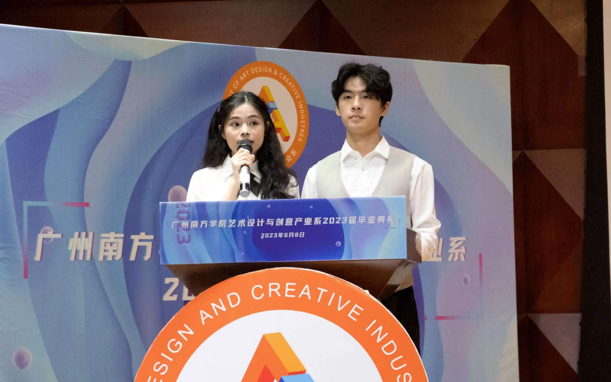 掌声响起,优秀毕业生表彰仪式拉开序幕。他们用自己的汗水和勤奋赢得了荣誉和掌声,用自己的成绩和作品展示了艺创系的风采和实力。陈嘉金同学以诗意的语言回顾了大学生活中难忘的点滴,感恩艺创系老师们的谆谆教诲和同学们的相互扶持,展望未来充满希望和挑战的人生旅程。