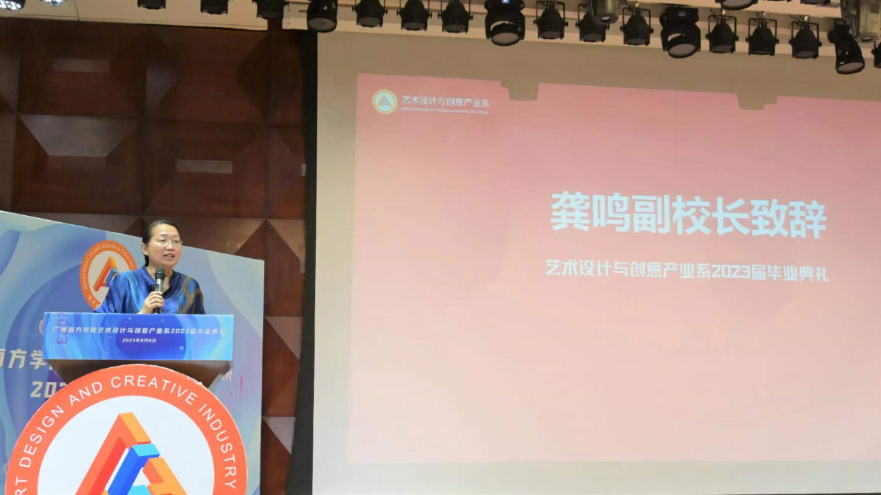 龚鸣副校长代表学校为艺创毕业生的致辞,她将“幸福”和“奋斗”作为毕业季的主题词,期待艺创毕业生们在未来的生活中,能够享受实现目标和追逐梦想的双重幸福,拥有保持幸福感和感恩心态的能力。