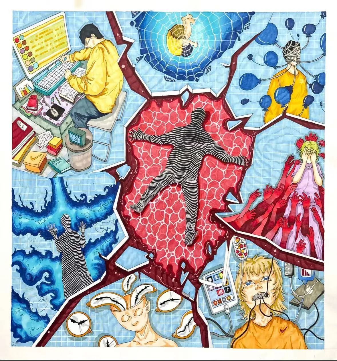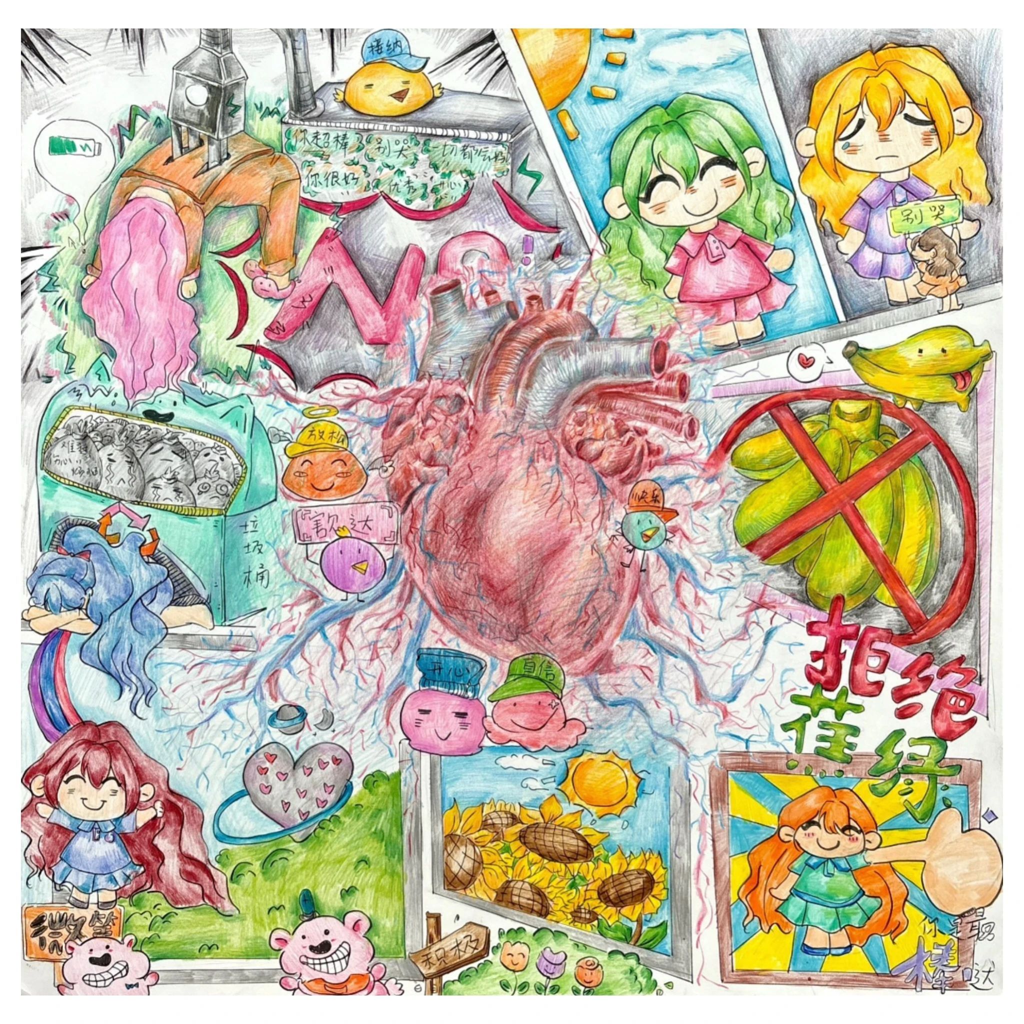 此次比赛为学生提供了展现内心世界的平台,通过画笔表达情感与思考,体现了积极向上的心理品质。作品不仅呈现出视觉上的美感,也为心理健康教育注入了新的创意与活力。活动的成功举办,不仅是一次艺术的交流,更是一次心灵的碰撞,体现了当代大学生乐观进取的精神风貌。期待未来继续以积极心态面对挑战,用色彩描绘希望,共同迎接下一次充满温度与光芒的心灵之旅。