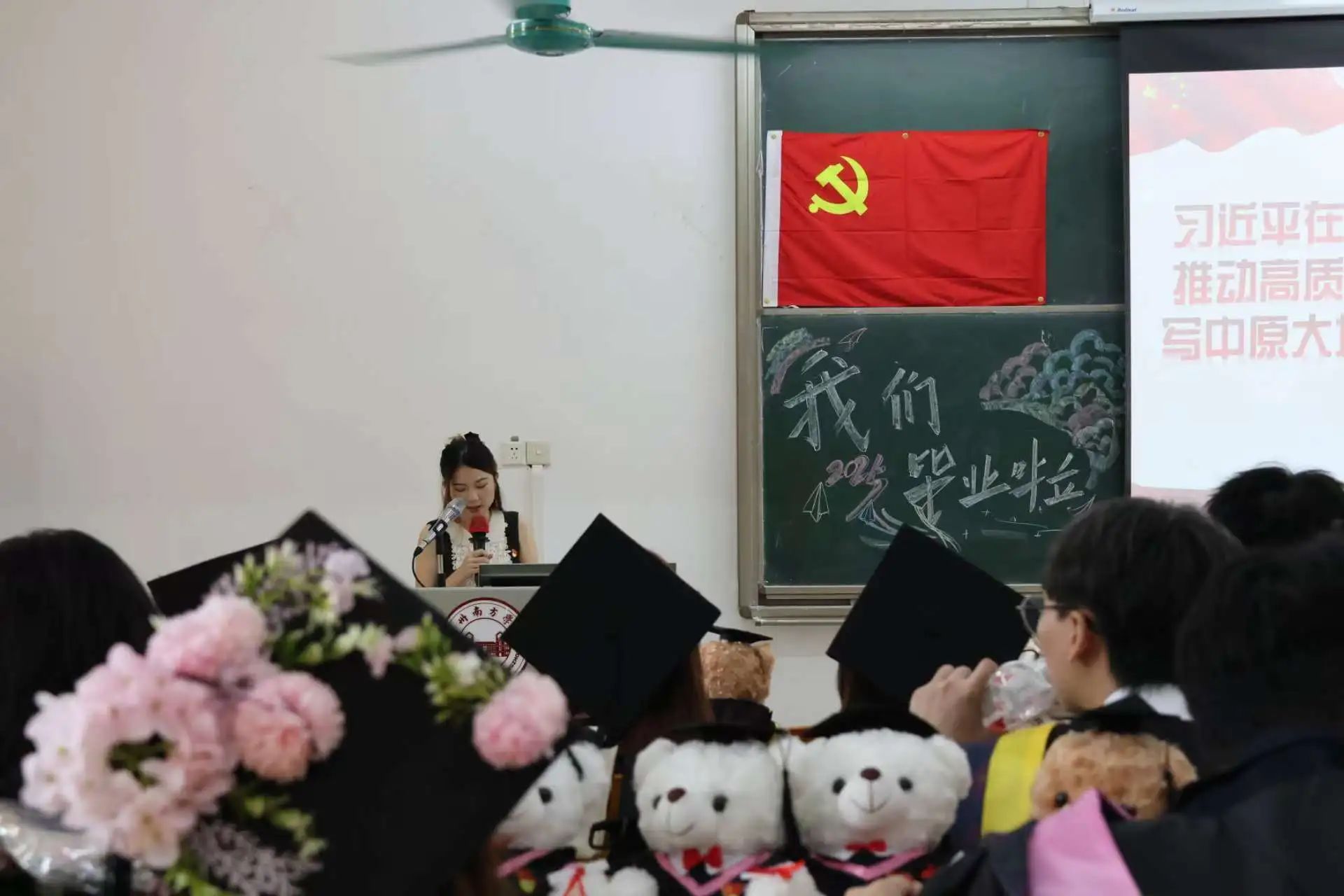 在离别之际,结合毕业生主题,开展学习《习近平总书记在河南考察时的重要讲话》,重点解读了“坚定信心推动高质量发展、高效能治理,奋力谱写中国式现代化中原新篇章”的核心要义,号召党员们毕业后,在自己的岗位上认真履职尽责,把工作做实做细,切实履行贯彻中央八项规定精神学习教育。