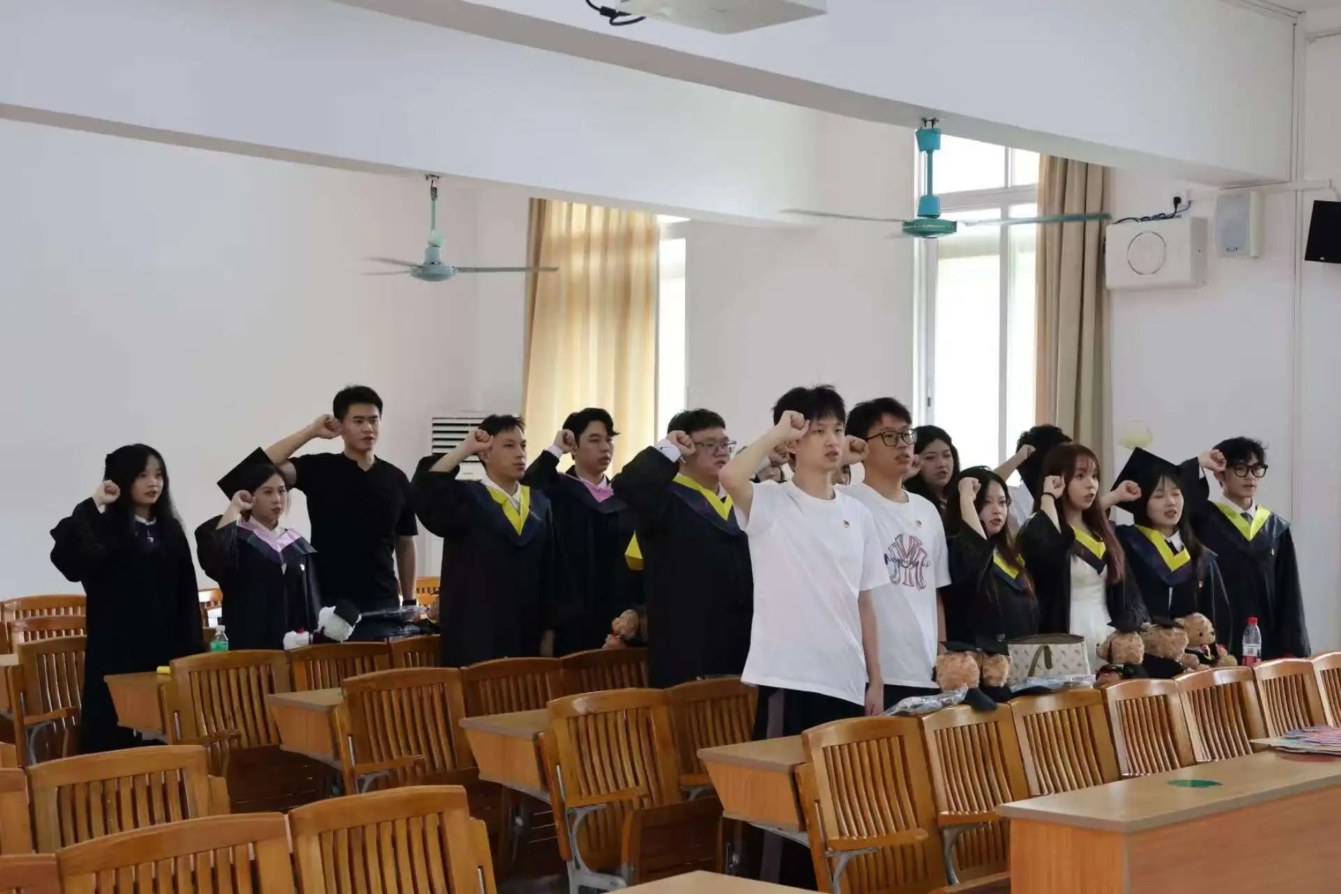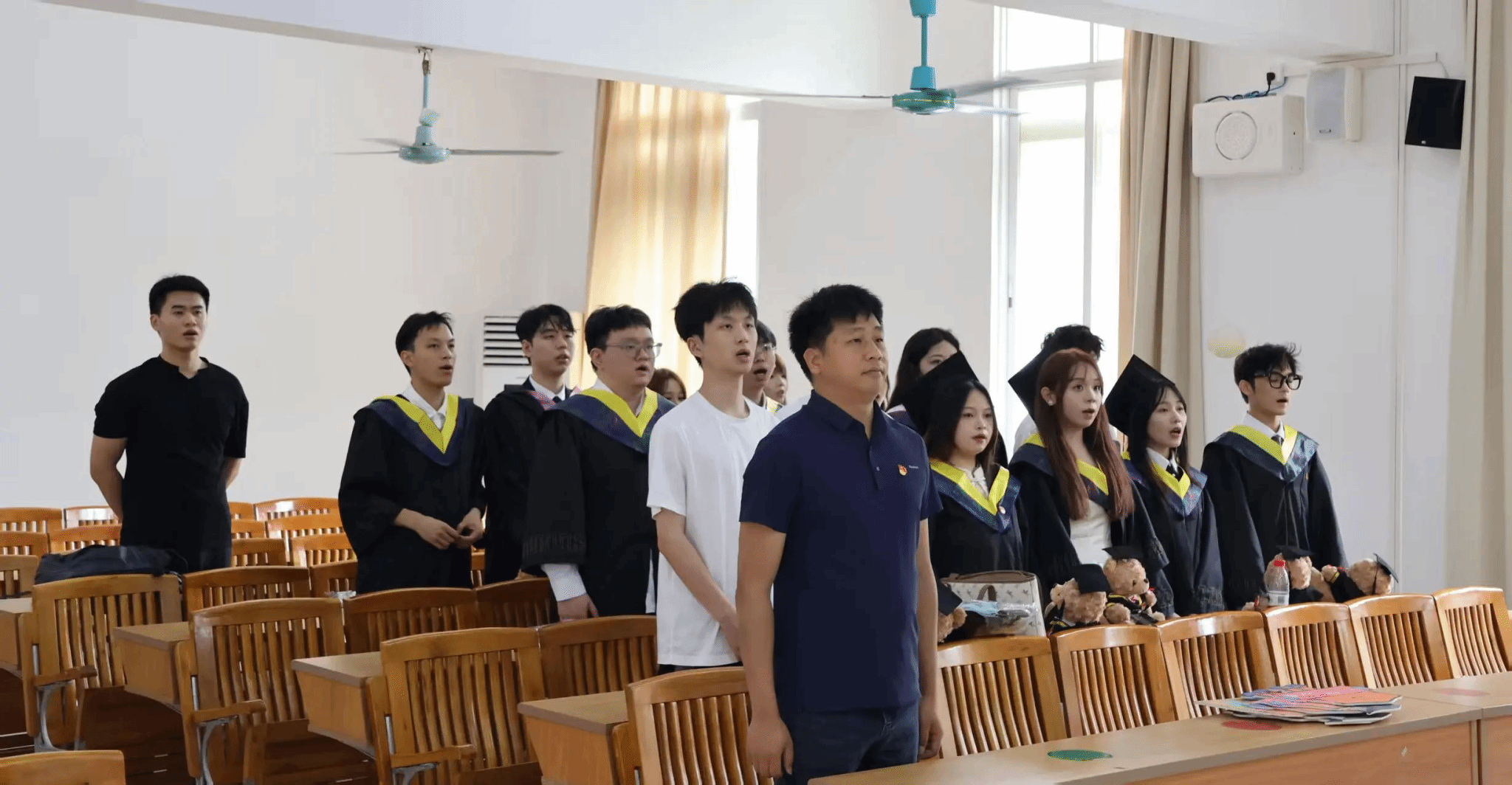 在陈娜书记的领誓下,全体毕业生党员面向鲜红党旗,庄严举起右拳,重温入党誓词。铿锵有力的誓言在会场内久久回荡、激荡人心。这不仅是对入党初心的深情回顾,更是对未来征程的坚定承诺,进一步锤炼了毕业生党员的理想信念,让他们更深刻地体会到肩头所担负的责任与使命。