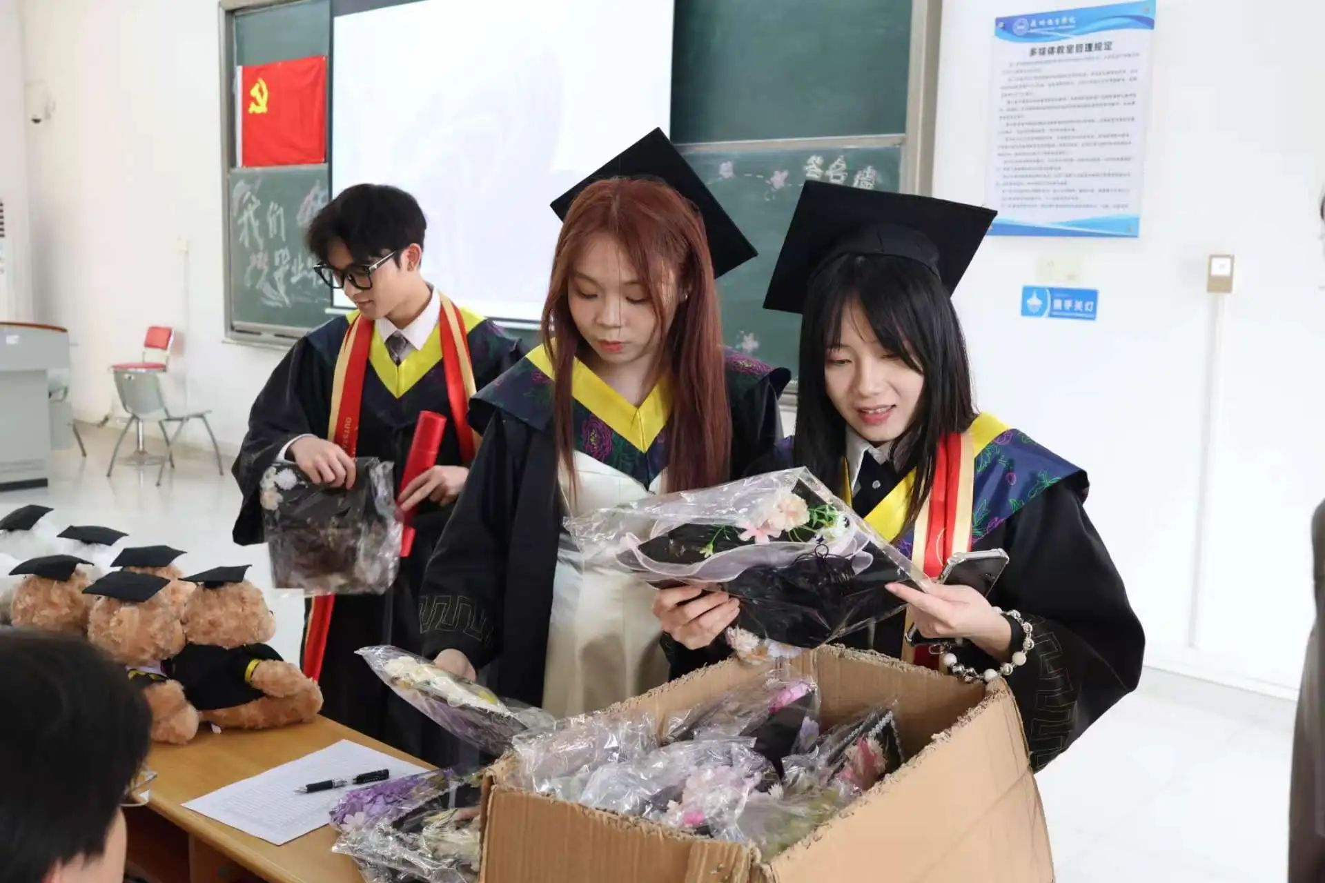 在活动筹备阶段,党支部便精心准备了一份寓意深刻的纪念礼物——佩戴党徽的纪念小熊与专属学士帽。小熊胸前的党徽,象征着永恒的忠诚与责任担当,专属学士帽,承载着学业圆满与新程启航的诚挚祝福。这份礼物,既是对过往党员历程的深切致意,更是对毕业生未来坚守信仰、砥砺前行的殷切期许。它时刻提醒毕业生党员们在未来的生活中,始终牢记党员身份,发挥先锋模范作用,以廉洁自律为准绳,为党和人民的事业不懈奋斗,将党组织的温暖与力量融入前行的每一步。