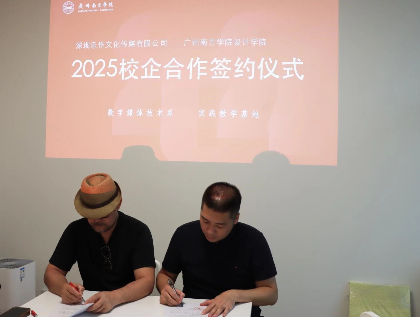 2025年6月30日,广州南方学院威廉希尔与深圳乐作文化传媒有限公司正式签署校企合作协议,双方将在人才培养、技术交流、实践教学等领域开展深度合作,旨在通过资源整合实现高校教育与产业需求的精准对接,为数字媒体技术领域培育高素质应用型人才。参与此次校企合作的学院领导有威廉希尔院长冯原、数字媒体技术系常务副主任吴以熙,以及学工办教师代表。
